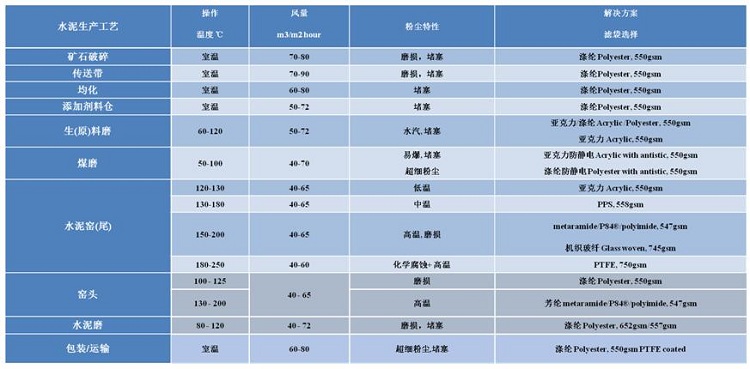 水泥行業(yè)濾料選擇